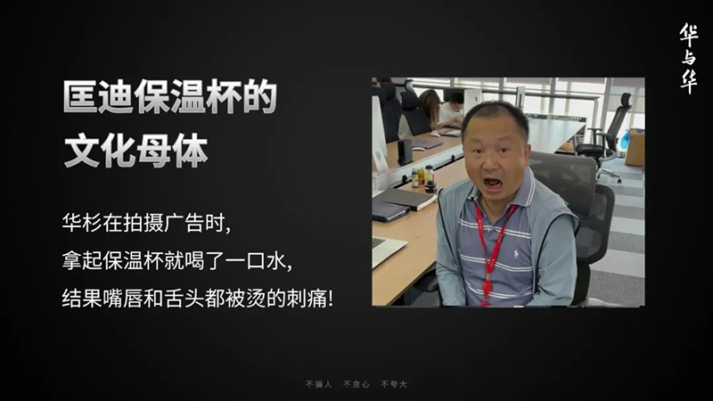 對于保溫杯來說,第二天還能保溫到多少度,它其實沒那么重要,重要的是要創(chuàng)造能被人記住的戲劇點——嘴巴都燙腫了!