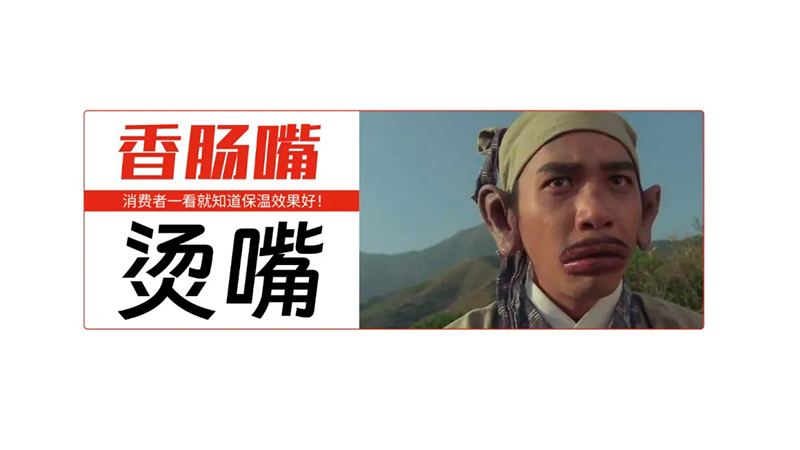 最終,我們創(chuàng)意設(shè)計了一個極其對稱、有著香腸嘴的“燙嘴哥”符號,放大了“燙嘴”這個詞語的戲劇性,使品牌話語和符號之間形成了強相關(guān)的牢固聯(lián)系。