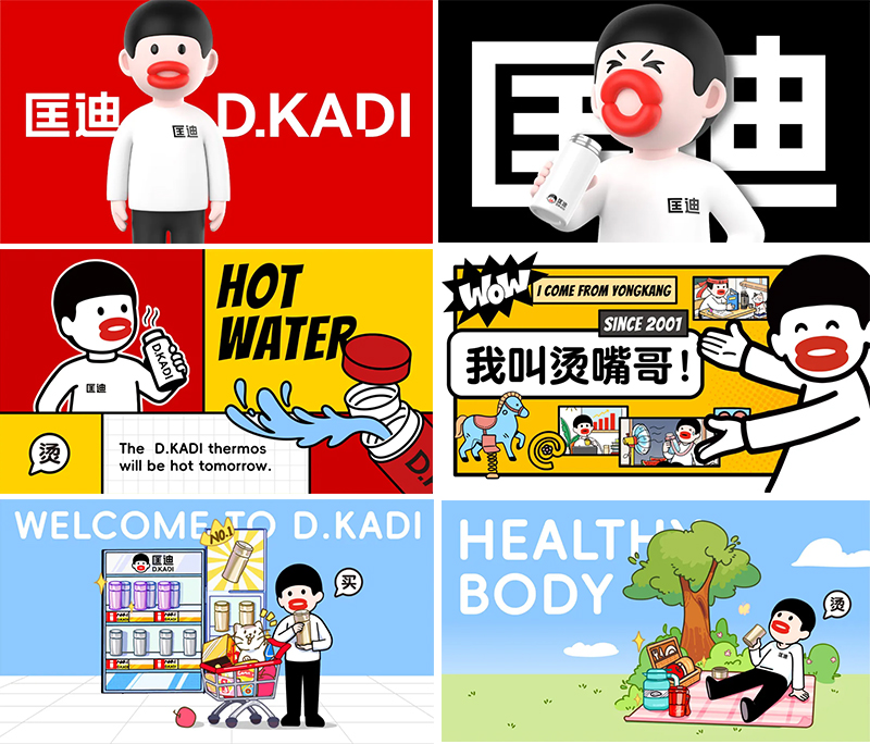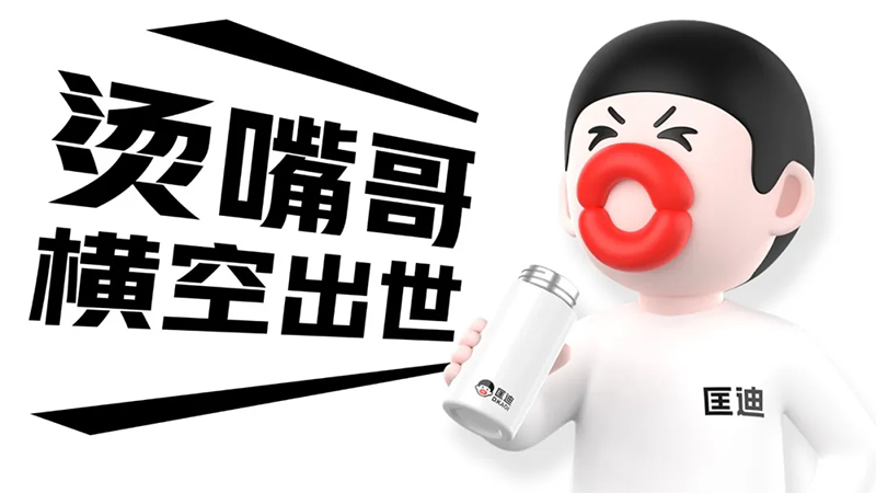 而產(chǎn)品就是我們最大的免費媒體,當(dāng)顧客手里拿著杯子的時候,他得知道它是匡迪的。所以我們首先要讓匡迪的杯子符號化。我們將燙嘴哥應(yīng)用于匡迪的產(chǎn)品。
