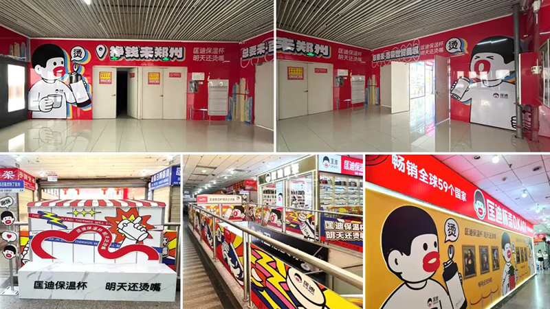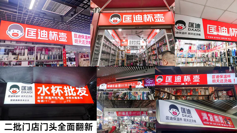 超級符號上門頭,讓它們在批發(fā)市場中成為最亮眼、最具吸引力的成交陣地,讓客戶的客戶也賺錢。當(dāng)你走進批發(fā)市場,最先撲面而來的就是那醒目的匡迪保溫杯門頭。