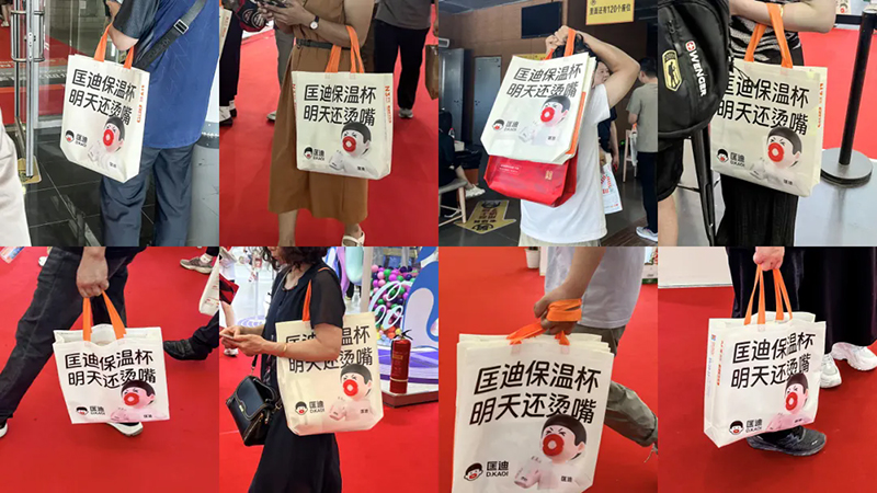 不僅如此,我們還讓所有參展者成為我們的宣傳大使。我們設(shè)計了一款展會專用的挎包,作為核心道具發(fā)送給參展者,走到哪兒都能看到背著匡迪挎包的人群。甚至有些人把它當(dāng)成了日??姘?/span>